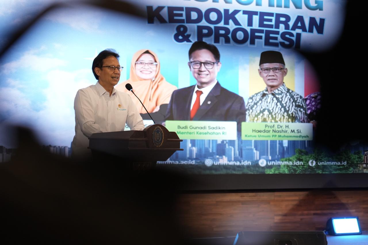 MUHAMMADIYAHBLORA.OR.ID-MAGELANG, Menteri Kesehatan Republik Indonesia (Menkes RI), Budi Gunadi Sadikin, menegaskan bahwa Muhammadiyah memiliki peran strategis dan kontribusi besar dalam mendukung pembangunan sektor kesehatan nasional, khususnya dalam peningkatan kualitas dan pemerataan tenaga dokter di Indonesia. Hal tersebut disampaikannya dalam acara Launching Program Sarjana dan Profesi Dokter Universitas Muhammadiyah Magelang (UNIMMA) yang digelar di Auditorium UNIMMA, Kamis (8/1).