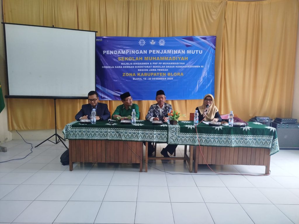 Muhammadiyahblora.or.id | Blora — Beberapa Sekolah Muhammadiyah di Kabupaten Blora mengikuti kegiatan Pendampingan Penjaminan Mutu Sekolah Muhammadiyah Zona Kabupaten Blora yang dilaksanakan pada Jumat, 19 Desember 2025. Kegiatan ini bertempat di SMP Muhammadiyah 1 Blora dan menjadi bagian dari upaya peningkatan kualitas pendidikan Muhammadiyah secara berkelanjutan.