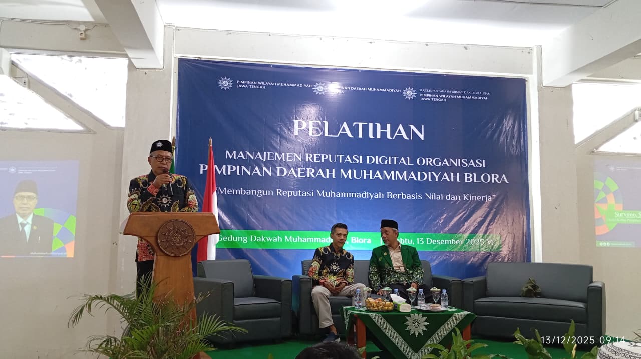 Blora, 13 Desember 2025 – Dalam rangka memperkuat dakwah dan komunikasi organisasi di era digital, Pimpinan Daerah Muhammadiyah (PDM) Blora menggelar Pelatihan Manajemen Reputasi Digital Organisasi pada Sabtu, 13 Desember 2025, bertempat di Gedung Dakwah Muhammadiyah Blora. Kegiatan ini diikuti oleh pimpinan persyarikatan, pengelola Amal Usaha Muhammadiyah (AUM), serta tim media dan komunikasi dari berbagai majelis dan lembaga di lingkungan Muhammadiyah Blora.